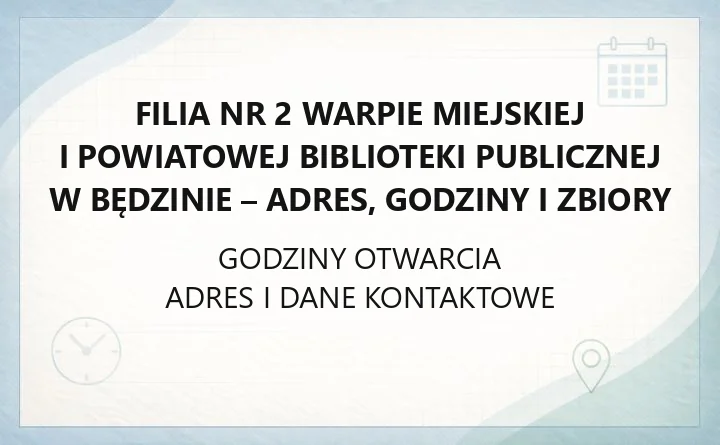 - Miejska I Powiatowa Biblioteka Publiczna w Będzinie Filia Nr 2 Warpie – kontakt, godziny otwarcia, dojazd, strukturę jednostki i sprawy online