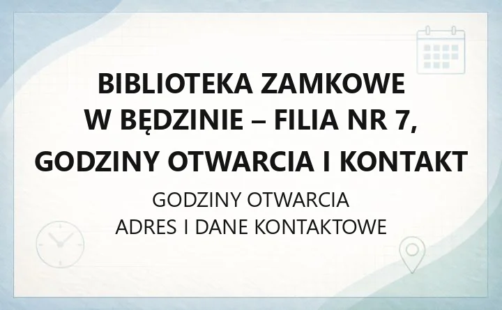 Materiał źródłowy stanowiła strona www.biblioteka.bedzin.pl. Dane mogą się zmieniać; pamiętaj, warto sprawdzić je na oficjalnej stronie.